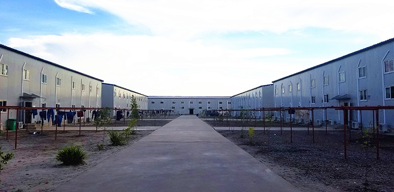 Before, you never know how hard it is if you don't experience it and now a bridge connects North and South. At beginning, without water and electricity but with flying sand and rolling pebbles, life on the island was very hard. The sunshine was very strong, and there were crocodiles and wild animals from time to time. Everything had to be transported by ship, and there were only two shifts a day. If forgets anything, nothing you can do but only look across the sea helplessly. Our construction army built under a high sense of responsibility and mission, where it generated electricity by itself, built deep wells, desalinated the seawater, set up camps, canteens and office areas; now the site begin to take shape and the environment improved a lot.